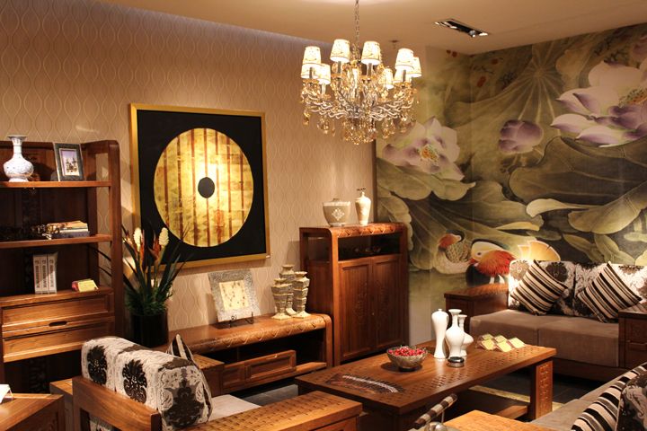 Geosheen极成LED照明下舒适的华典木枋家具终端环境