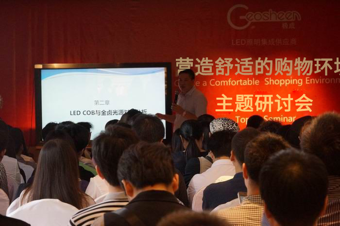 服饰品牌的展示在于终端卖场,而终端卖场的灯光照明对于服饰品牌的提升起到十分重要的作用。为让现场上百位服饰品牌负责人对LED照明、专业的灯光设计有更深入的认识和了解,拥有资深LED科研经验的深圳市LED产业联合会副会长、深圳市极成光电有限公司林陈椿先生慷慨分享,针对案例指出目前市面上错误的灯光设计,并通过光效对比图显示LED照明与金卤灯照明的区别,运用图、数据表展示出LED照明节能高效环保的优势。最后通过具体的专卖店灯光设计案例,进行效果对比,引起了现场服饰品牌负责人对极成LED产品关注和兴趣。
