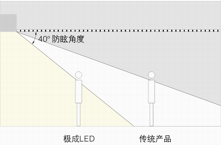 防眩光一直是困扰照明设计及商家的难题,极成LED照明运用最先进的光学设计理念,有效地实现光照分布和眩光控制。同传统的光学相比,极成LED照明的光学系统解决了光线从灯杯外漏而产生眩光,影响视觉舒适的问题。所以消费者可以近距离观看店铺里面的商品并且感觉不到灯的存在,传统照明产品在消费者离商品很远的距离人眼就感觉不舒适,让消费者无法近距离接触商品。