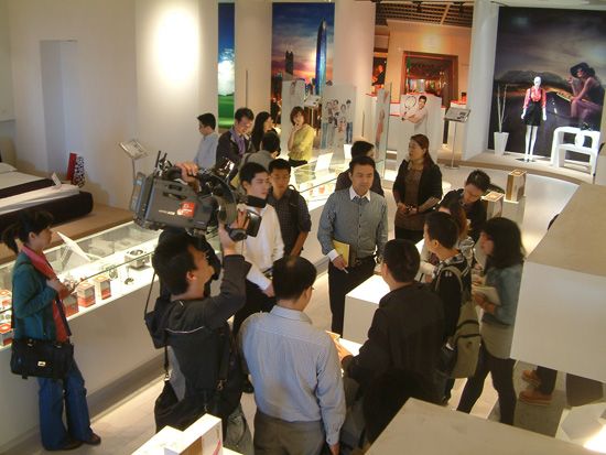 来访媒体人员在极成Geosheen LED光环境体验中心采访极成光电董事长林陈锋先生 随后,记者在极成展厅了解到极成Geosheen LED照明产品拥有自主知识产权的光学系统、以及高达92的显色指数使焦点更加清晰色彩更加自然,与传统灯具接口完全互换,方便客户实现快速节能和环保。 有专门为展示设计的轨道灯和专门为超市蔬菜水果设计的LED生鲜灯等,采用了光源和灯具整体设计的方式,拥有美观、散热好、色彩稳定的特点,适合高档商业 照明场所。
