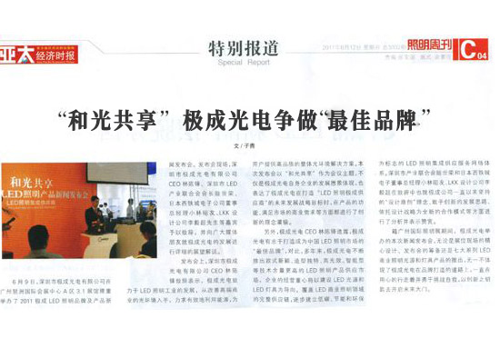 亚太经济时报:“和光共享”极成光电争做“最佳品牌”