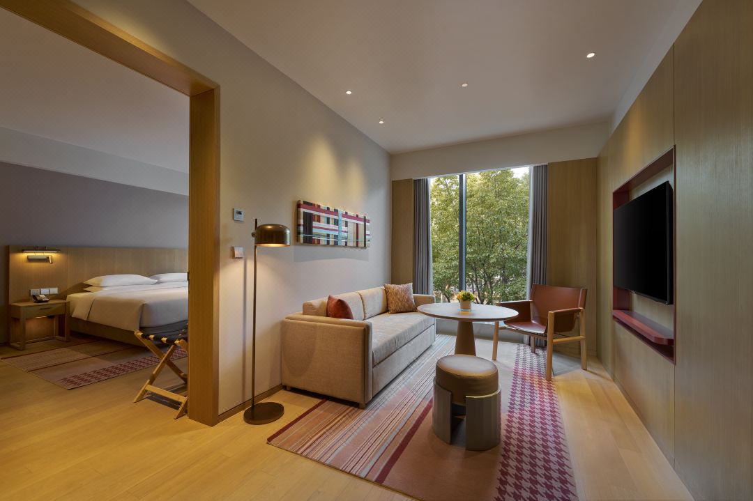 酒店拥有167间客房,以亚麻纹理、原木元素和“见光不见灯”的灯光艺术,为宾客打造了一个温馨舒适的居住空间。无论是29平方米的标准客房,还是45平方米的套房,每一处细节都经过精心雕琢,既展现了现代设计的简约与优雅,又传递出自然与人文的深刻共鸣。特别值得一提的是,部分客房还能欣赏到河畔两岸的山林美景,为宾客带来了无与伦比的视觉享受。在这里,宾客不仅能享受到高品质的入住体验,还能感受到生活的从容与惬意。