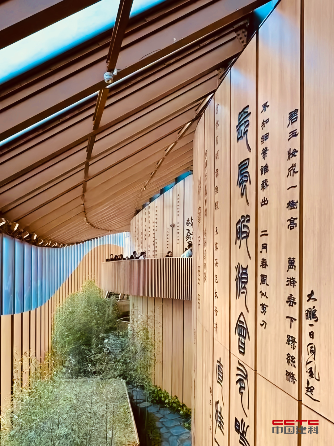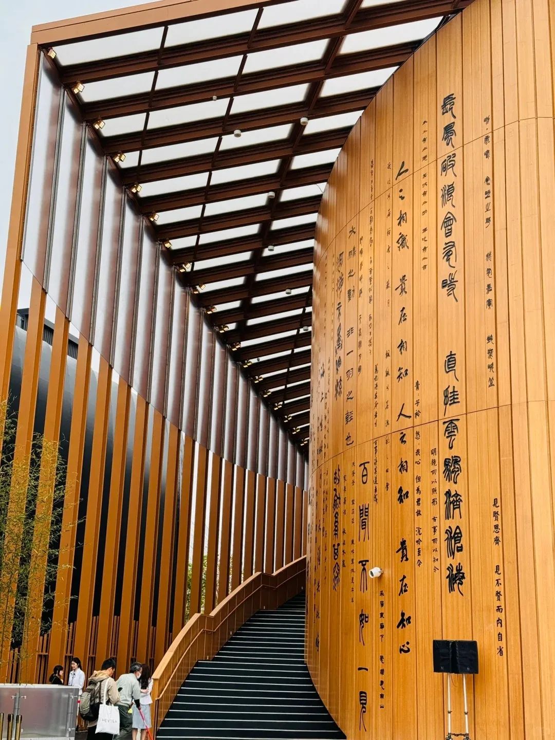 竹简曲墙之外有细长的格栅帷幕,