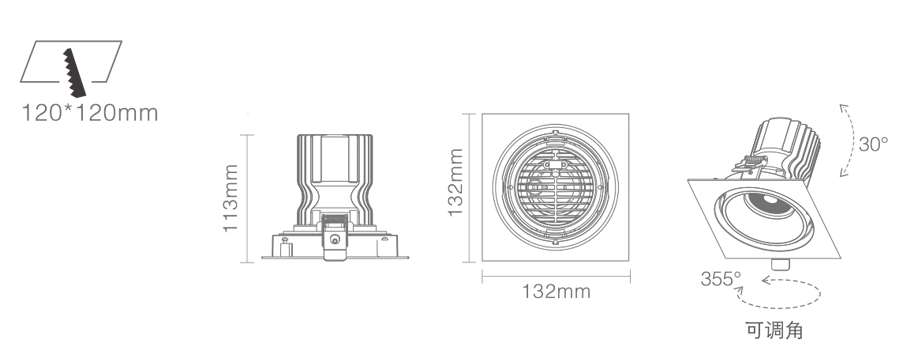 3. Clearance around light fting to be alowed for angular adjustment;保留足够空间以便灯具可作调节角度;