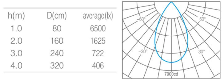 - 光束角50°