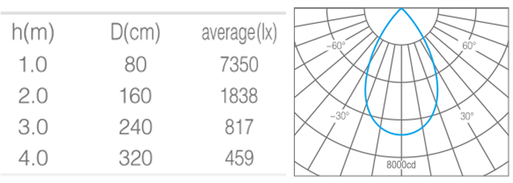 - 光束角50°