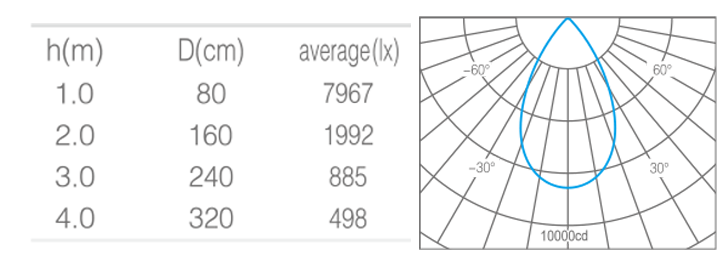 - 光束角50°