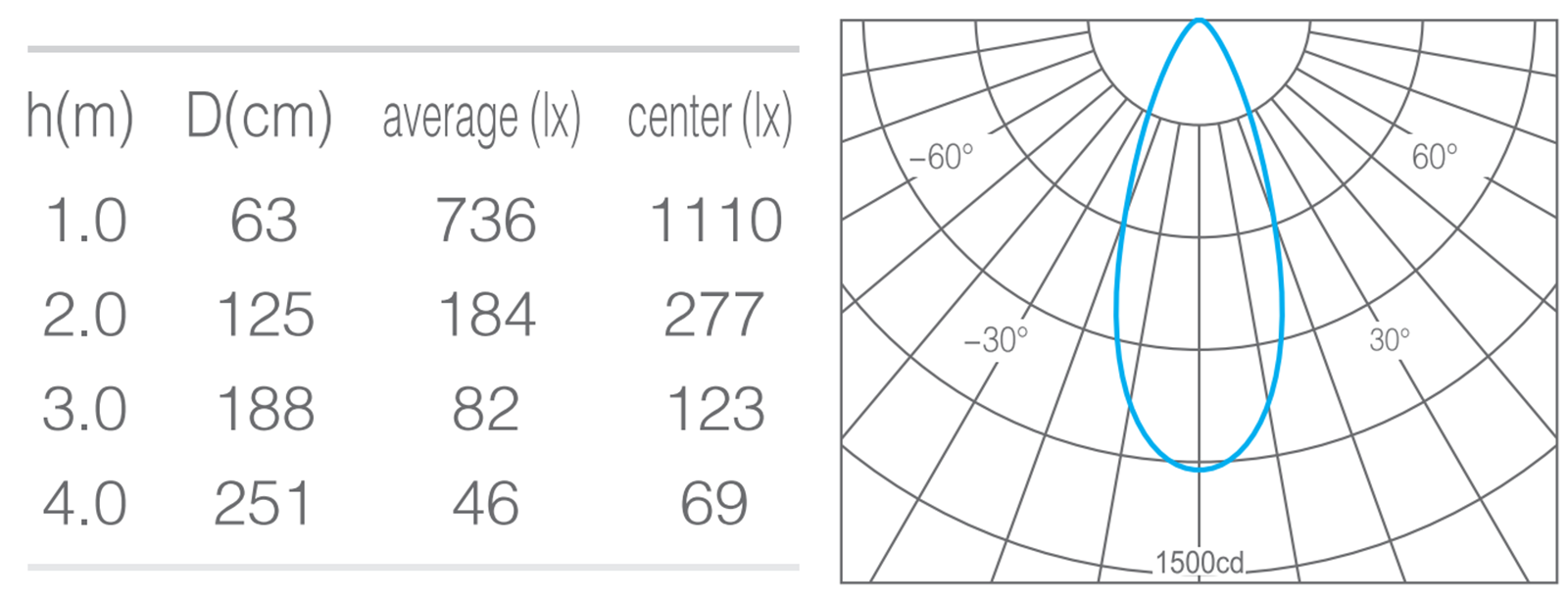 • 峰值光强1100cd