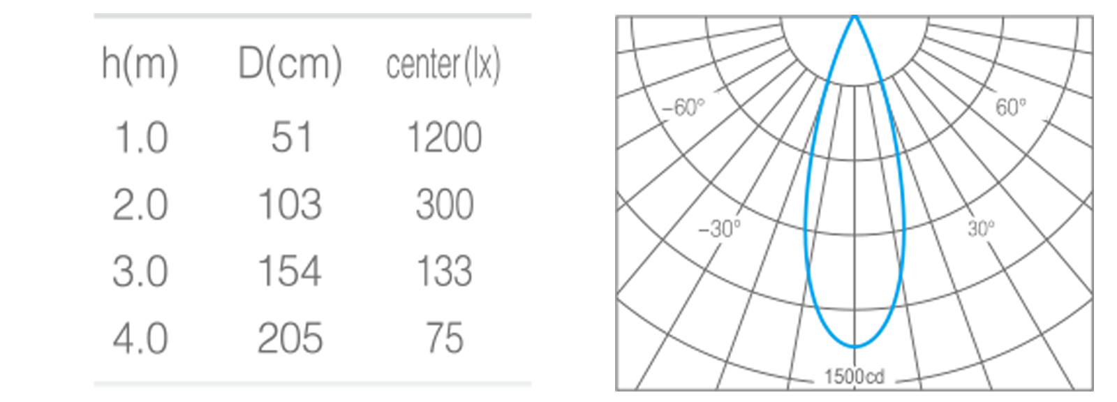 • 峰值光强1200cd