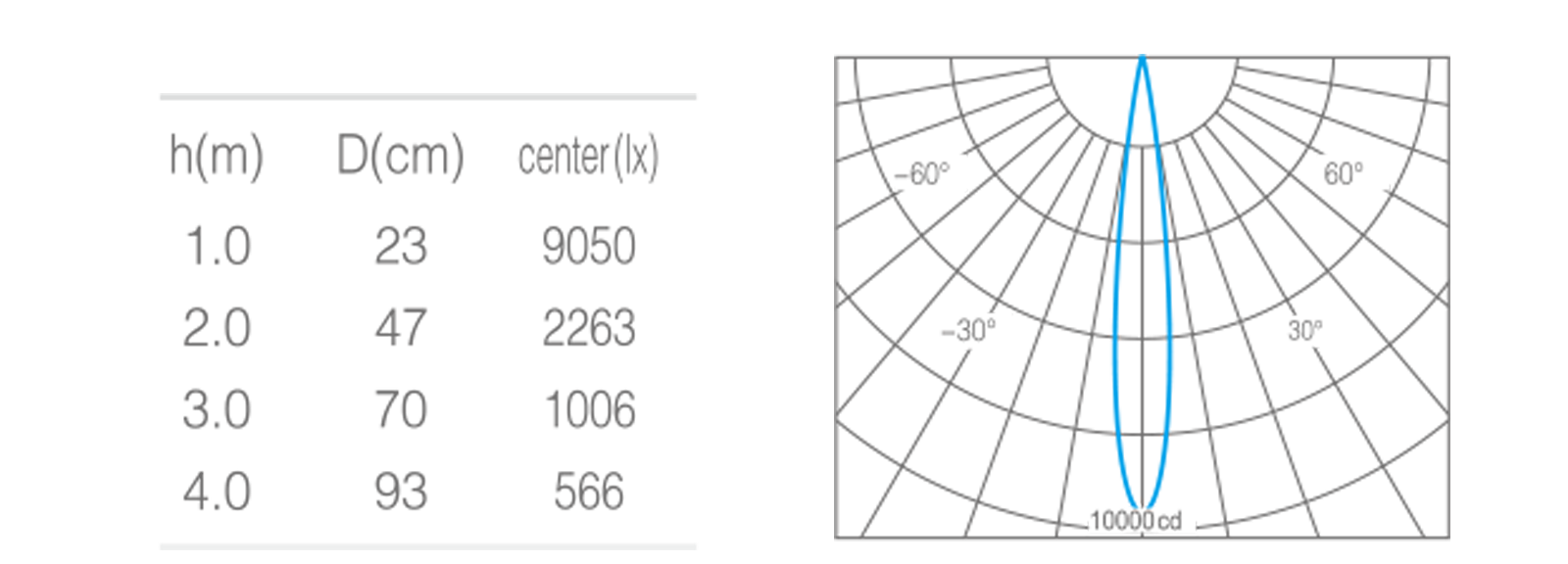 • 光束角10°