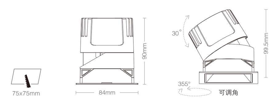 3. Clearance around light fting to be alowed for angular adjustment;保留足够空间以便灯具可作调节角度;