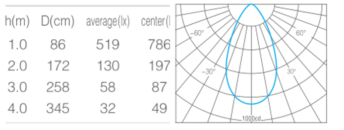 • 峰值光强786cd