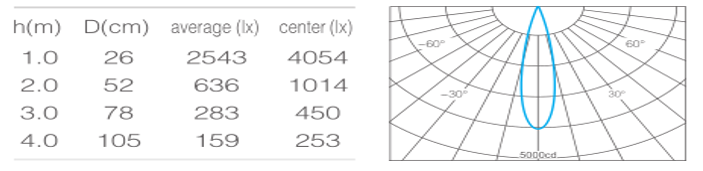 • 光束角15°