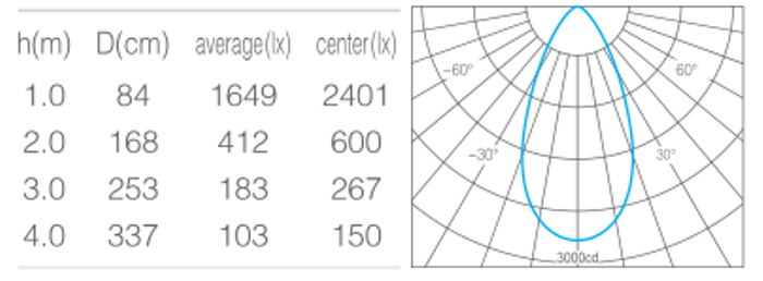 • 光束角50°