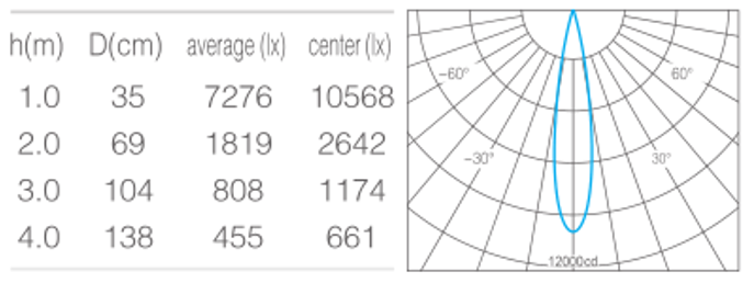 • 光束角15°