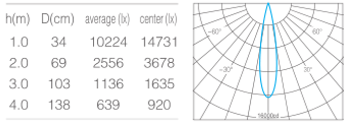 • 光束角15°