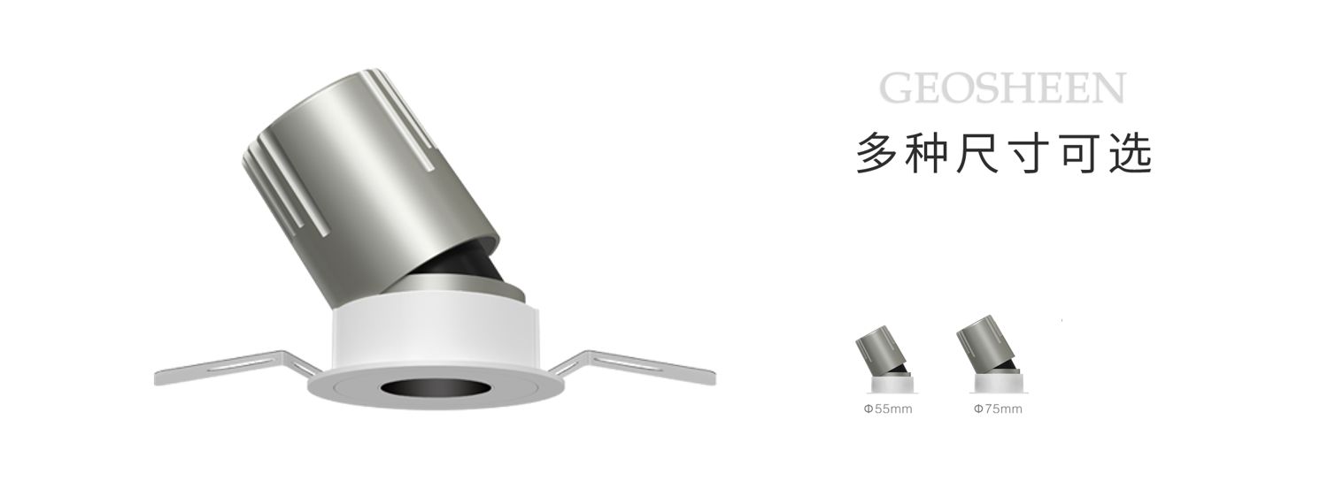 <span style="line-height:2;">·&nbsp;创新专利光学,优质光斑,超防眩效果;</span><br><span style="line-height:2;">·&nbsp;金属结构设计,高级质感;</span><br><span style="line-height:2;">·&nbsp;标准化配件可任意互换;</span><br><span style="line-height:2;">·&nbsp;水平旋转355°,垂直旋转30°;</span><span style="line-height:2;"></span><br><span style="line-height:2;">·&nbsp;全方位调节照射角度不漏光;</span><br><span style="line-height:2;">·&nbsp;独立可拆光源结构,维护不损坏天花;</span><br><span style="line-height:2;">·&nbsp;Φ55、Φ75、开孔多种选择;</span>