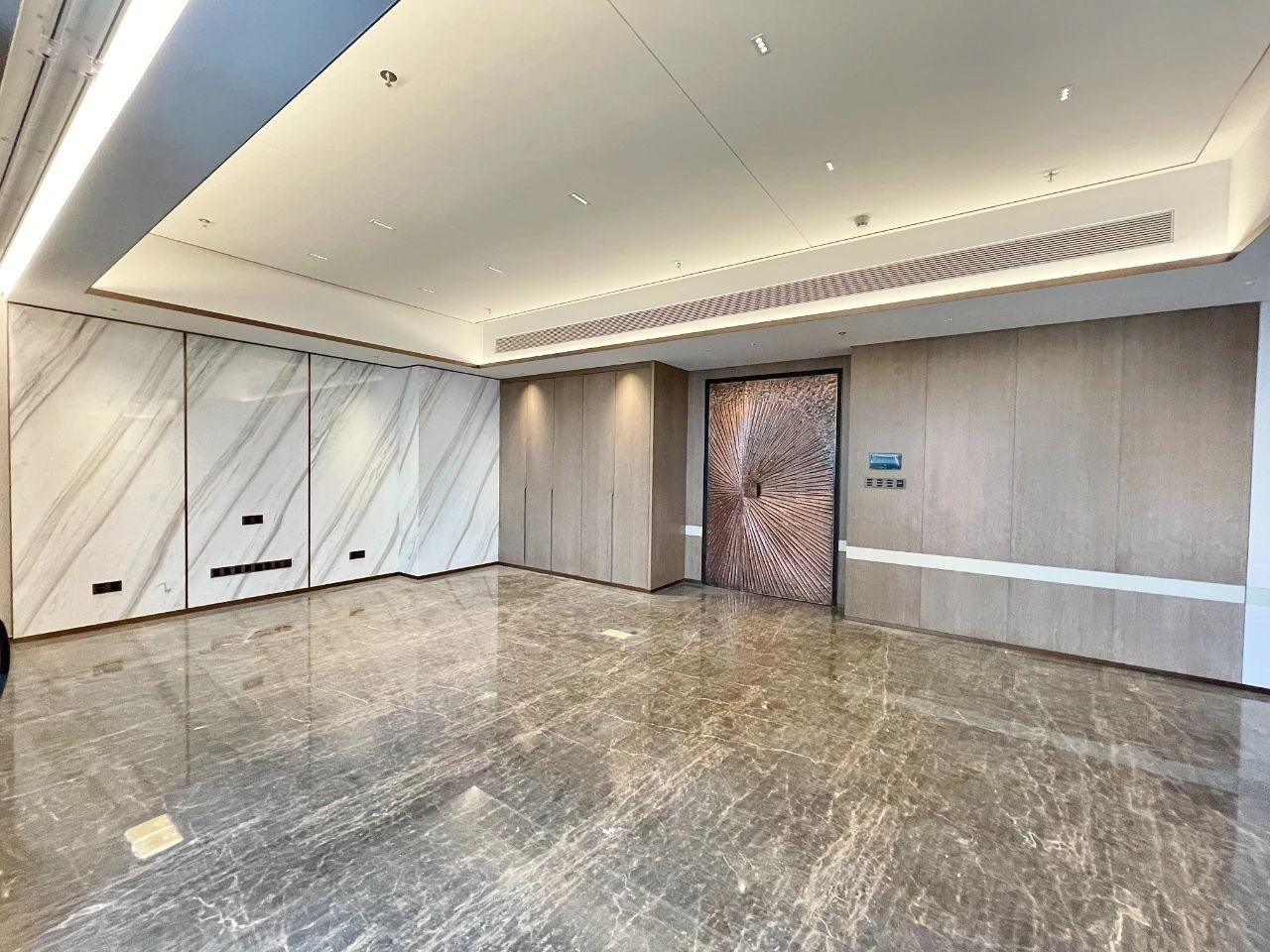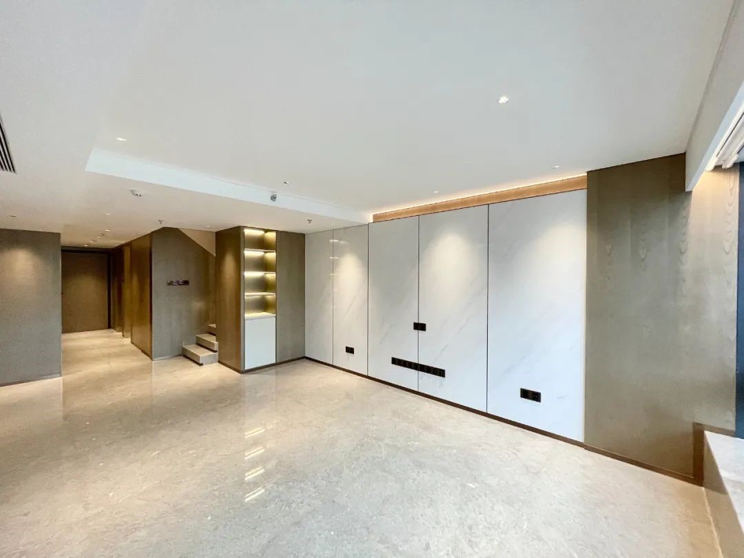560㎡户型,约23米壮阔观海面宽,深圳湾海景一览无遗;约12米宽轩敞双厅,纳藏不凡气度;豪华全套房设计,独立卫浴,打造塔尖私属领域;约77m隐藏式主卧套房,臻享私密与从容;专属双梯双门入户,私享尊崇归家礼遇。客厅采用采用Geosheen极成五头格栅灯,这款灯具以其迷你精巧的结构和独特的防眩光设计,巧妙地融入了室内空间。条形灯具与天花线条造型交相辉映,简洁流畅的线条与鲜明的角度相互交织,宛如一幅精美的画卷。在这样的光影交织下,整个客厅仿佛被赋予了新的生命,视觉感得到了极大的提升,让人仿佛置身于一个充满艺术气息的空间之中。